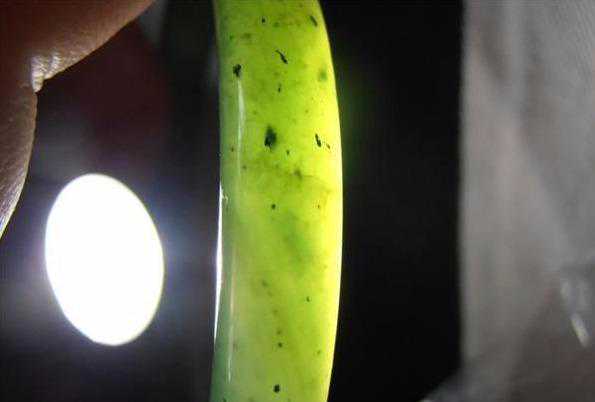 碧玉手镯在打灯下呈现出棉絮状物