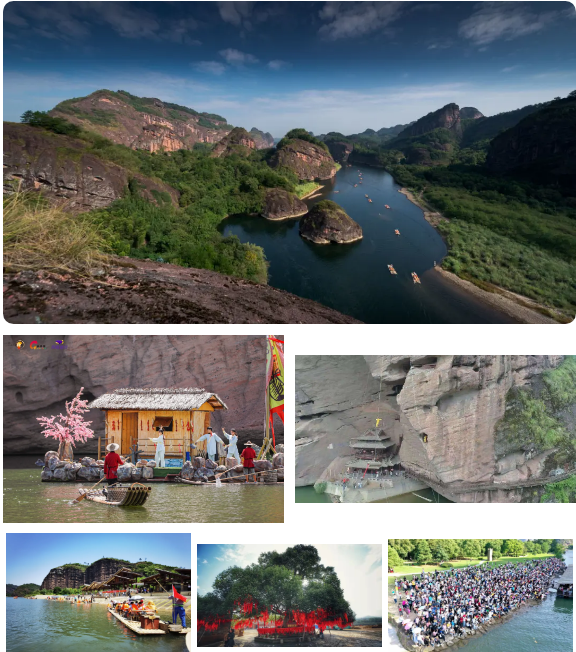 第二天:9点:00前往观光车始发站乘车(路程约20分钟)出发前往无蚊村游览“天下第一奇村”(游览时间约半小时)——10:00前往竹筏码头(路程约15分钟)——乘竹筏游泸溪(游览时间约1个小时)——下竹筏仙女岩游游览至桃花洲——(游览时间约半个小时)——12:00桃花洲观看悬棺表演——12:30用餐休息(1小时)——13:30出发前往泸溪河景观大道(游览时间约45分钟)——14:30前往花语世界(路程约40分钟)——15:10游览花语世界(游览时间约1.5个小时)16:45结束——道源山庄用餐——19:30观演寻梦龙虎山(观演时间约60分钟)——返程约30分钟——21:00入住道源山庄休息。