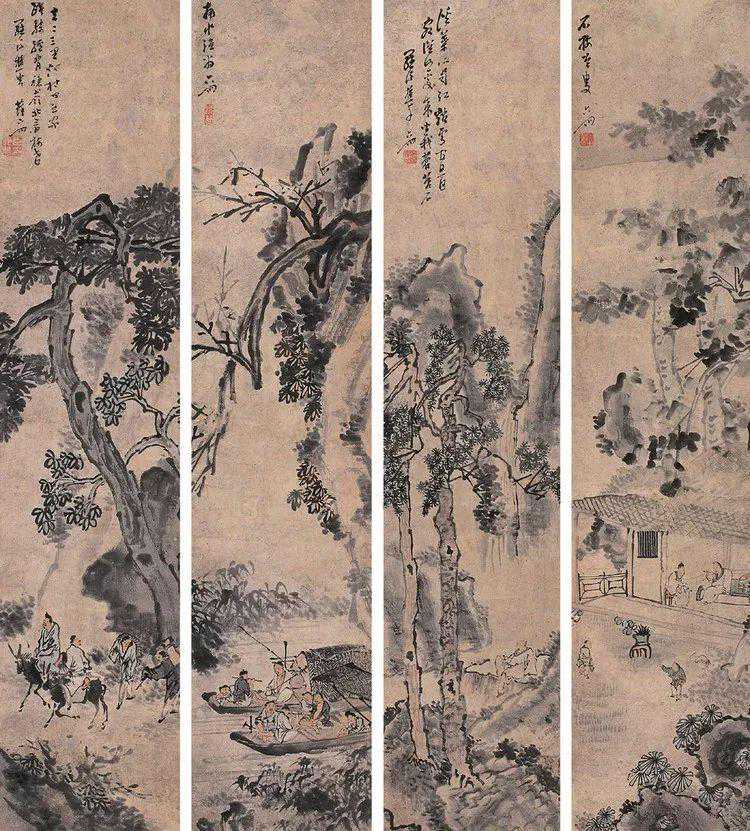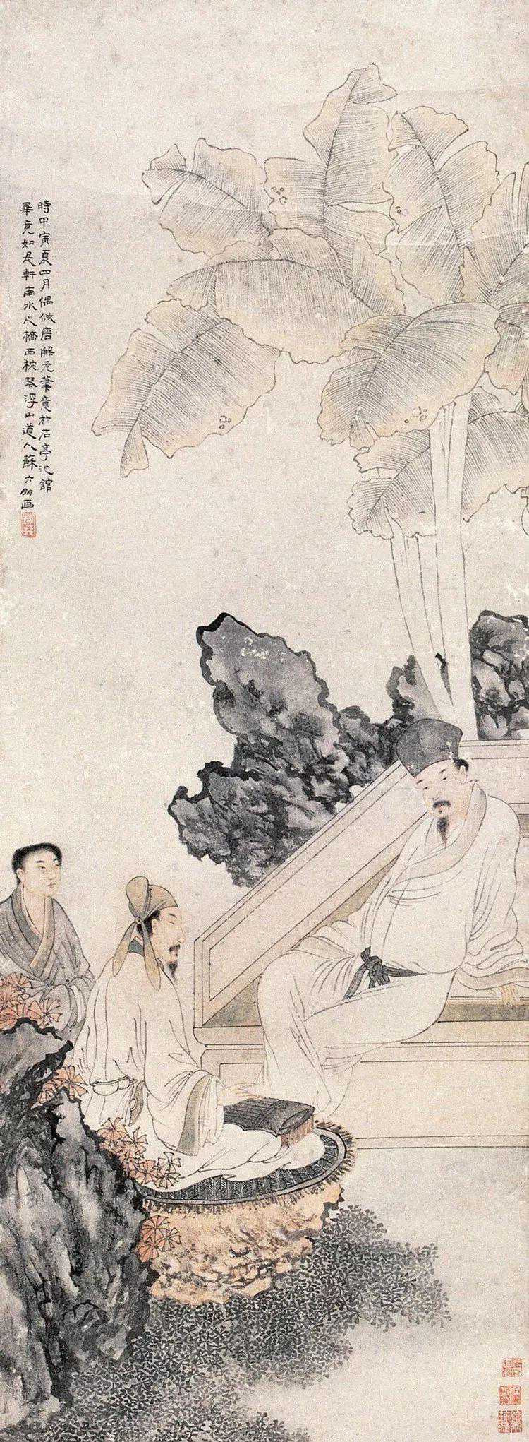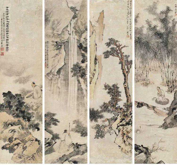 除了人物画之外,苏六朋还能够画山水、花鸟,以及浅绛重彩,所作的山水画与花卉设色亦以落笔浓淡相宜,变化雅致而为士林赏识。