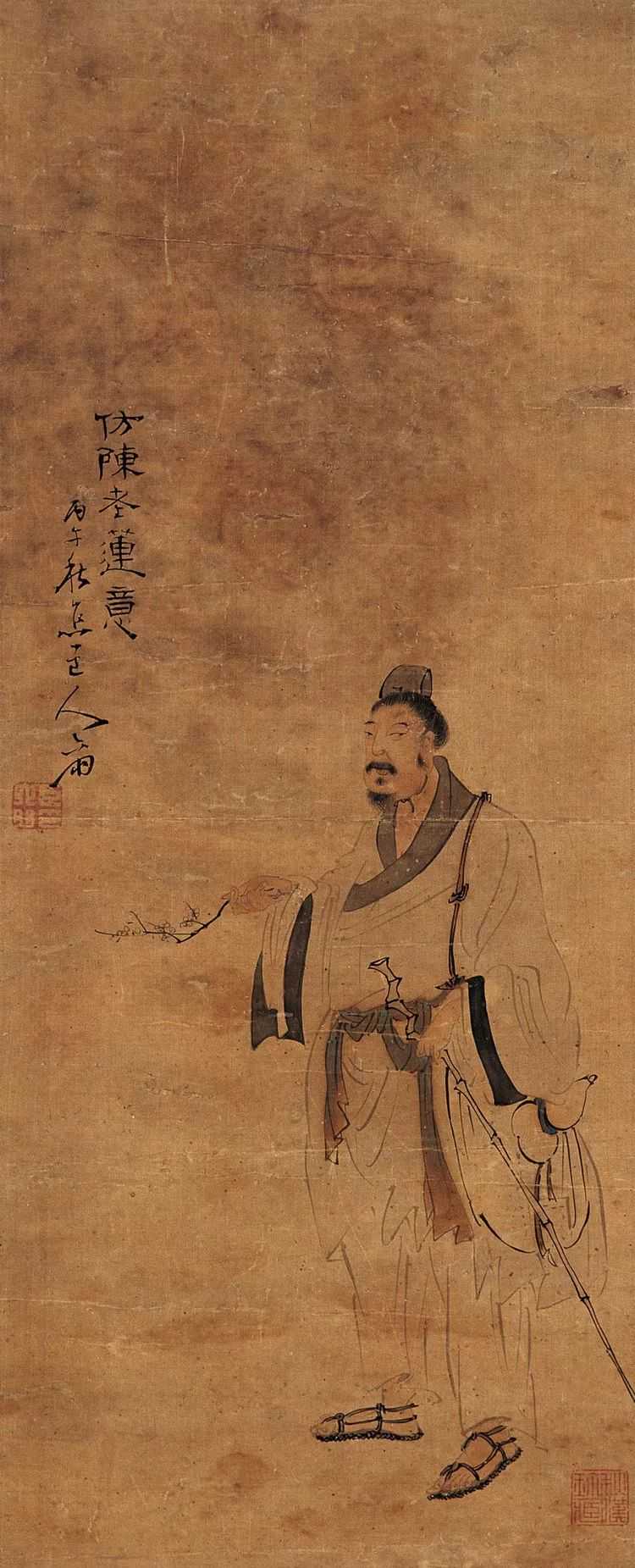 他生活在清代晚期的广东。少年的时候即喜爱绘画,他专程到罗浮山,拜宝积寺的名僧德堃和尚为师学习绘画。学成后,他来到广州,在城隍庙外摆摊卖画,并且以此养家为生。