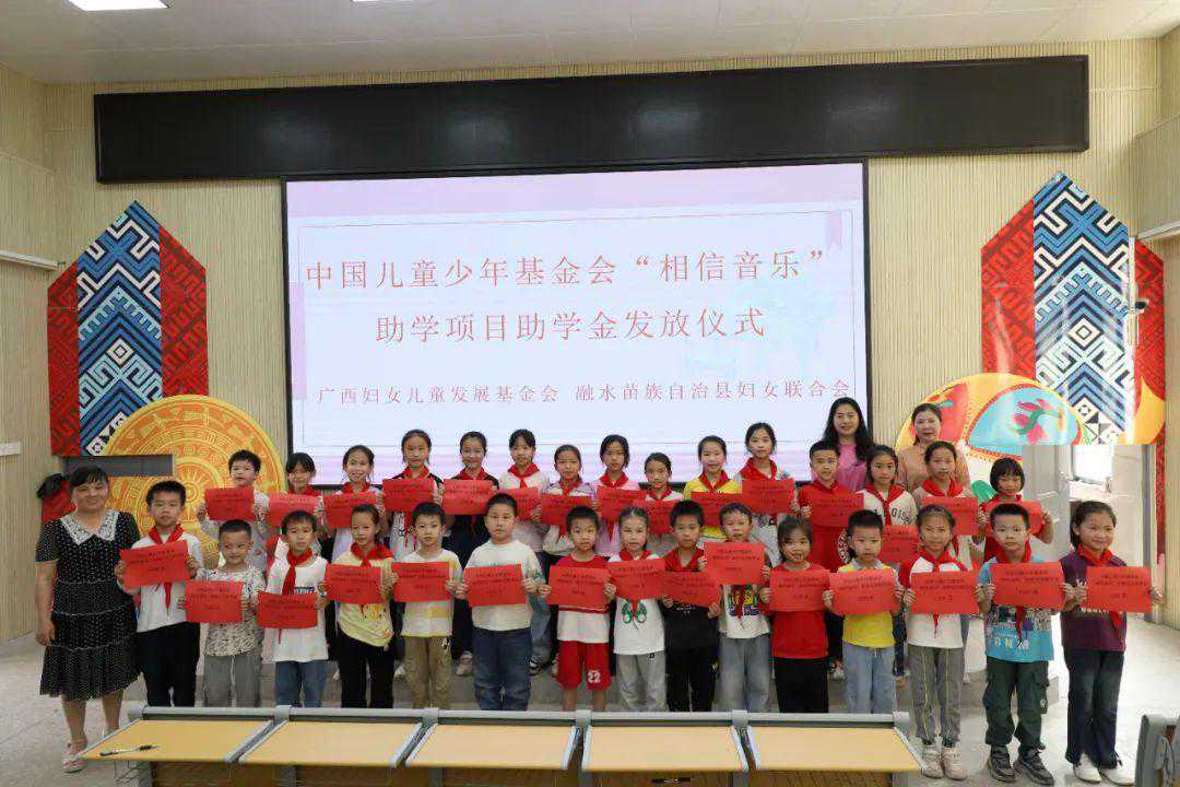 据了解,该项目还先后在融水镇城北小学、融水镇苗家小镇小学举行“相信音乐”助学金发放仪式,分别给50名小学生每人发放1200元的助学金,激励他们勤奋学习、成长成才。