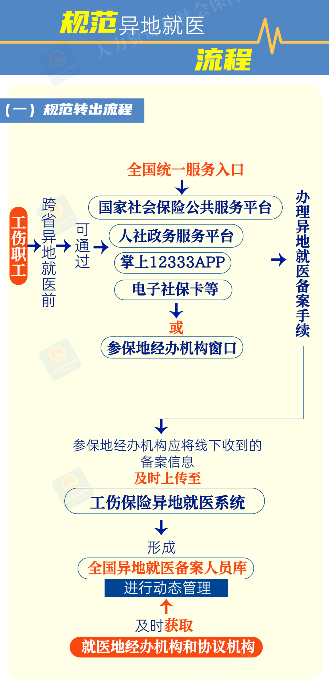 ▶以上异地转诊转院是指因医疗条件所限需要转诊转院到省外就医;异地长期居住是指工伤职工在省外居住半年及以上;常驻异地工作是指工伤职工被用人单位长期派驻至省外工作。