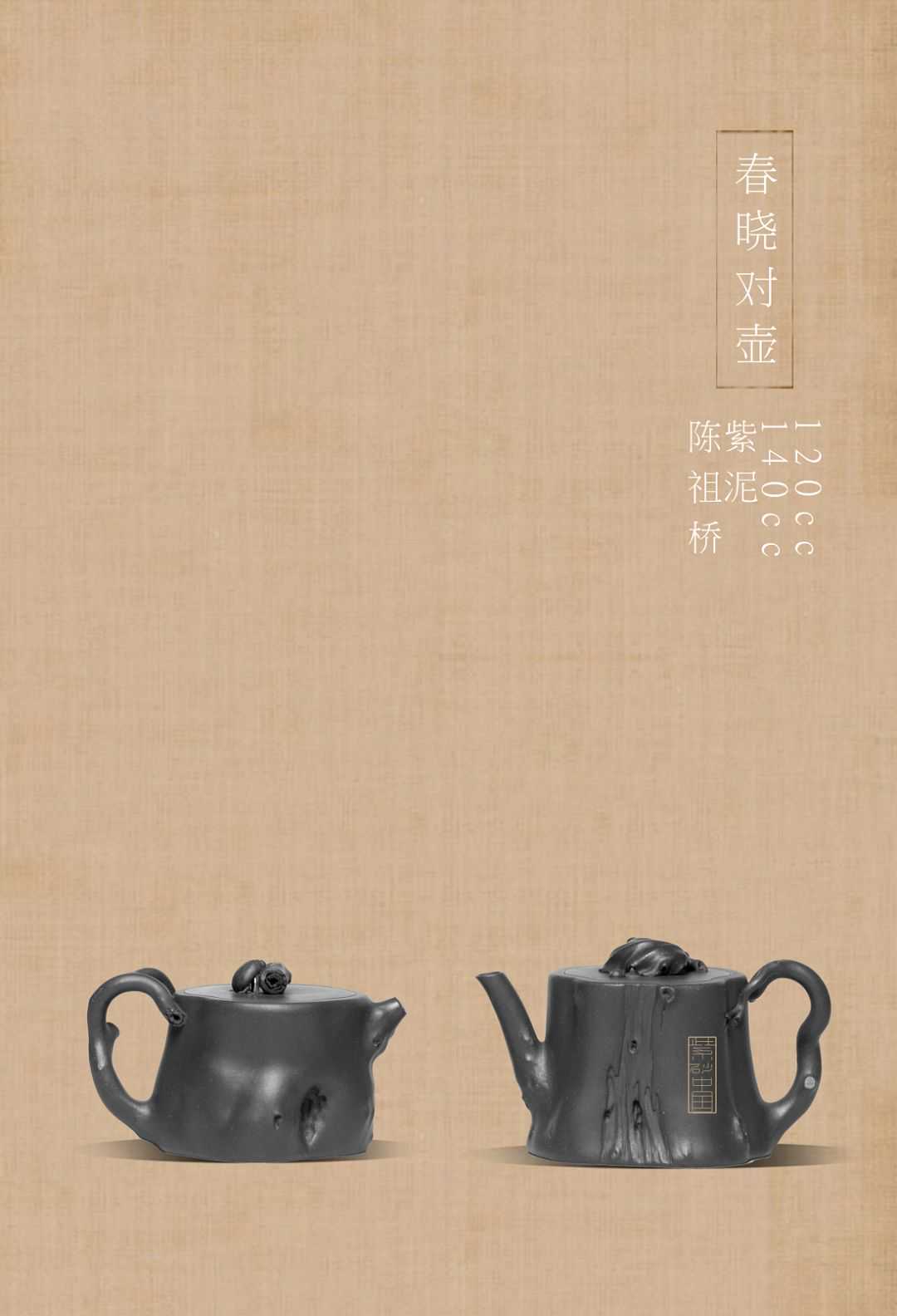 此对壶设计精巧,遵循崇尚自然,师法自然,回归自然的创作理念,将冬末春晓的自然之美赋予壶身,从而升华作品的人文内涵,传递出一种实体表面的精神象征。
