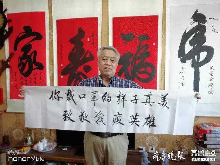 通过齐鲁晚报·齐鲁壹点看到“你戴口罩的样子真美”专题活动的消息之后,贾绪荣老人主动联系到记者,希望能用自己的方式向战疫英雄表达敬意。