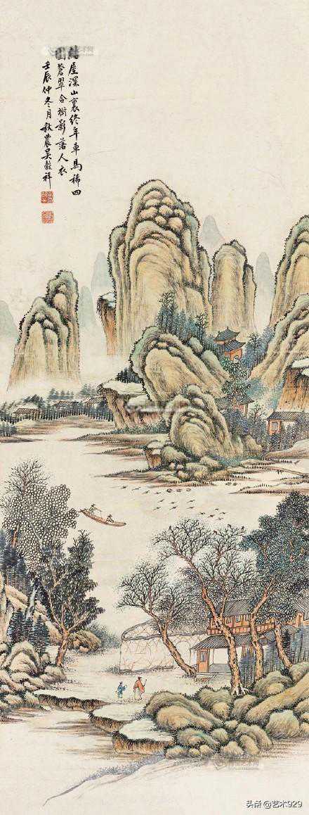 题签:吴榖祥先生山水画轴。德海珍藏松石堂。