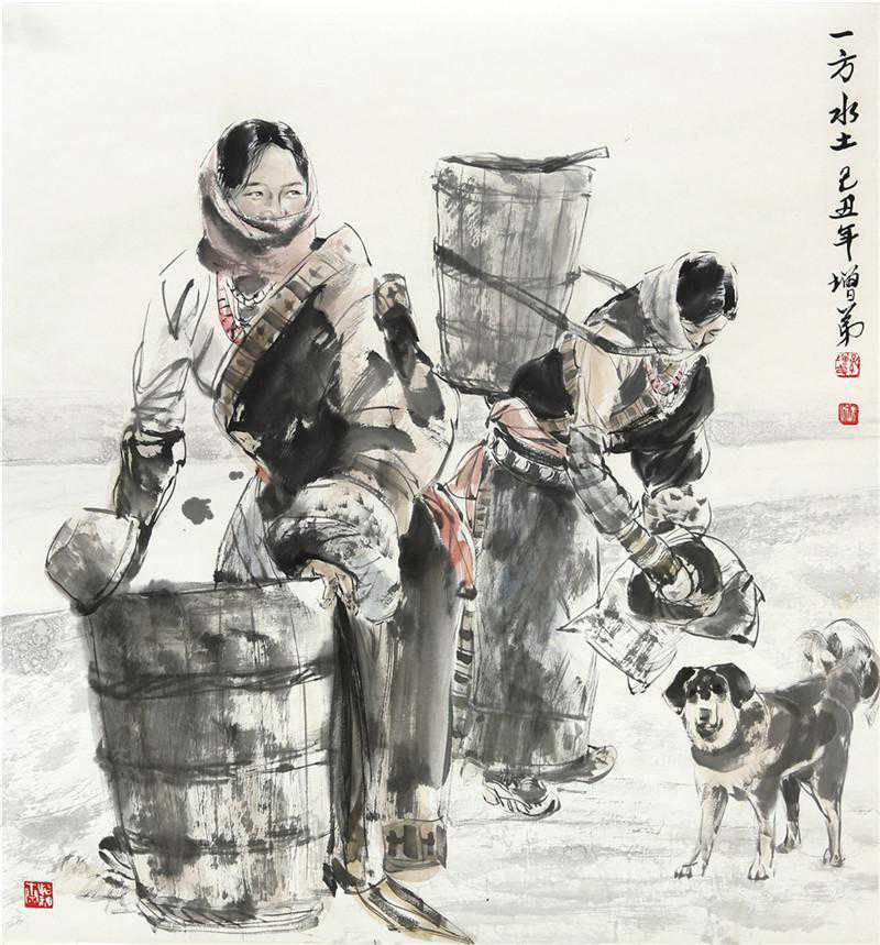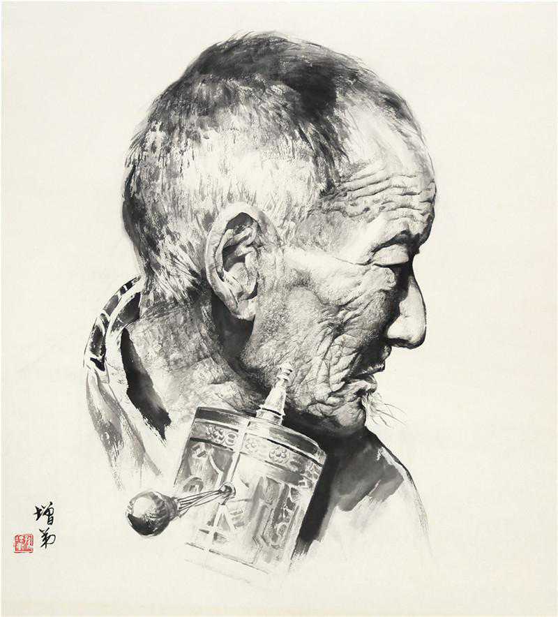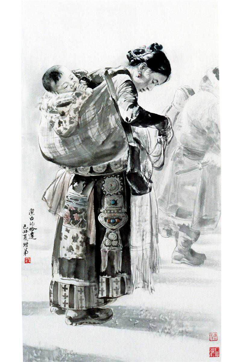 孙增弟用饱含深情的笔触绘出了一系列西藏人物画,他的作品有着黑白灰的强烈对比,光影笔墨的自然融入,浑厚壮丽的人物形象,让人们感受到了一个虔诚而清澈的纯净世界,用明快、欢乐的基调表现出西藏人民的喜悦、欢乐和幸福感,画出了自己心目中的“阳光西藏”。