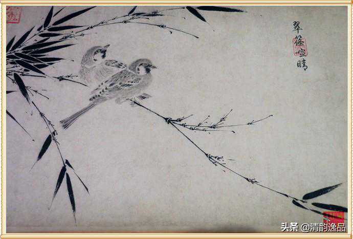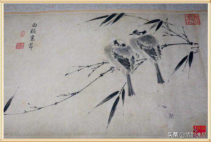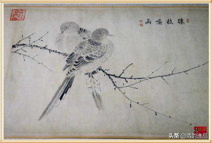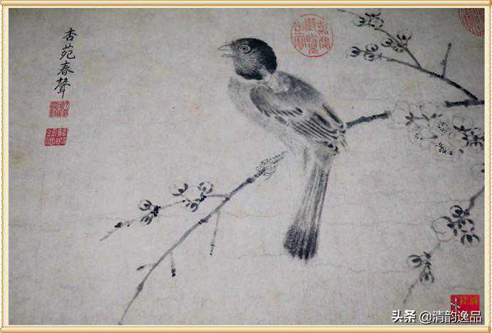 《写生珍禽图卷》是宋徽宗赵佶为数不多的真迹之一,是赵佶写生花鸟画的典范,笔调朴质简逸,全卷皆用水墨,对景写生,无论禽鸟、花草均形神兼备。