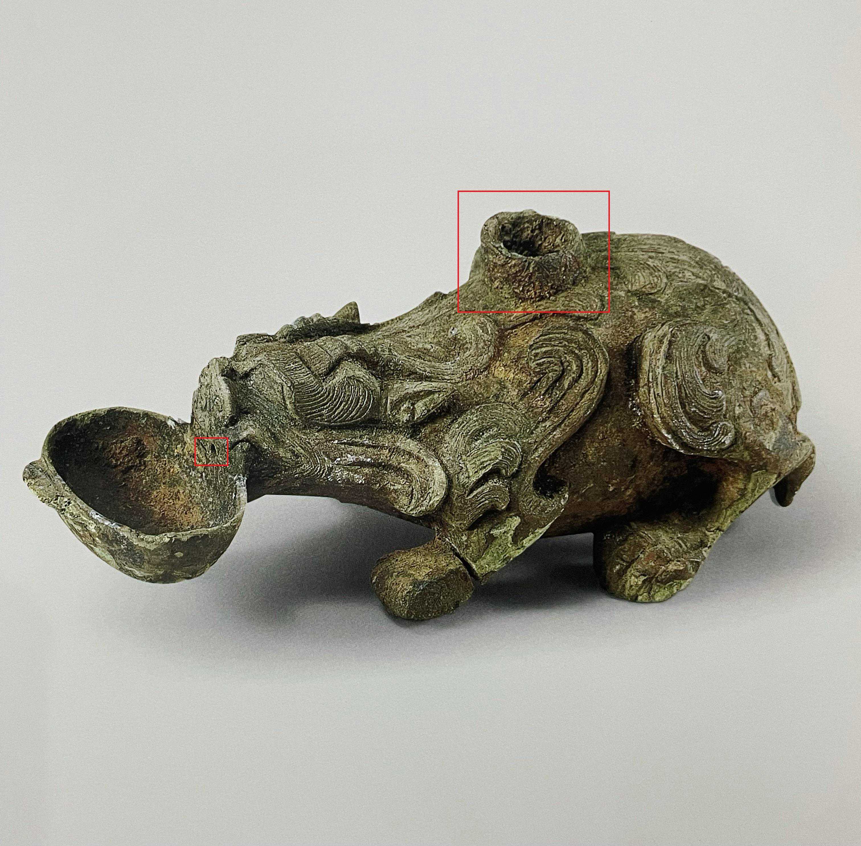 兽口处有一个隐蔽的小孔
