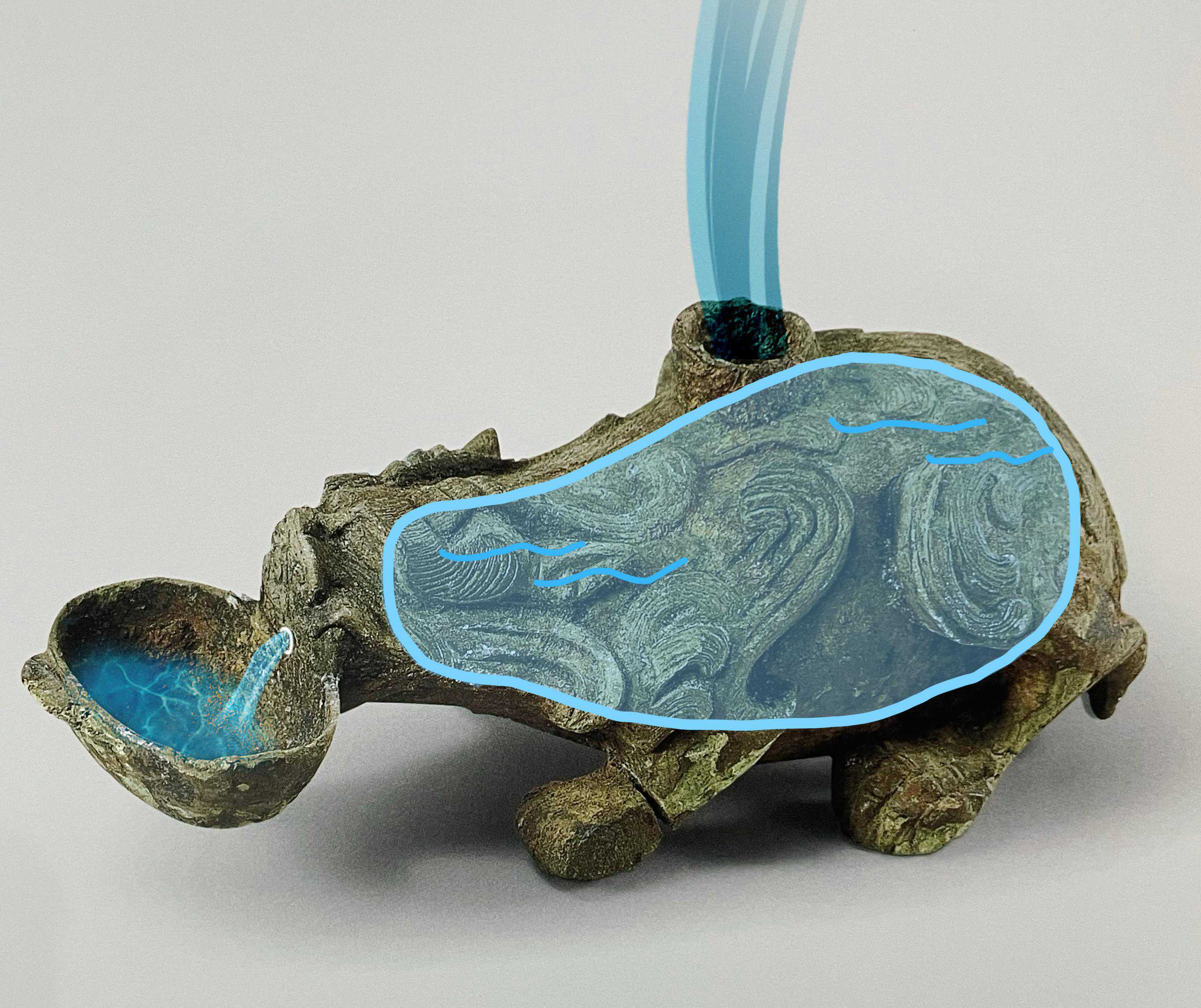 水由此从胖胖小肚子流入耳杯中