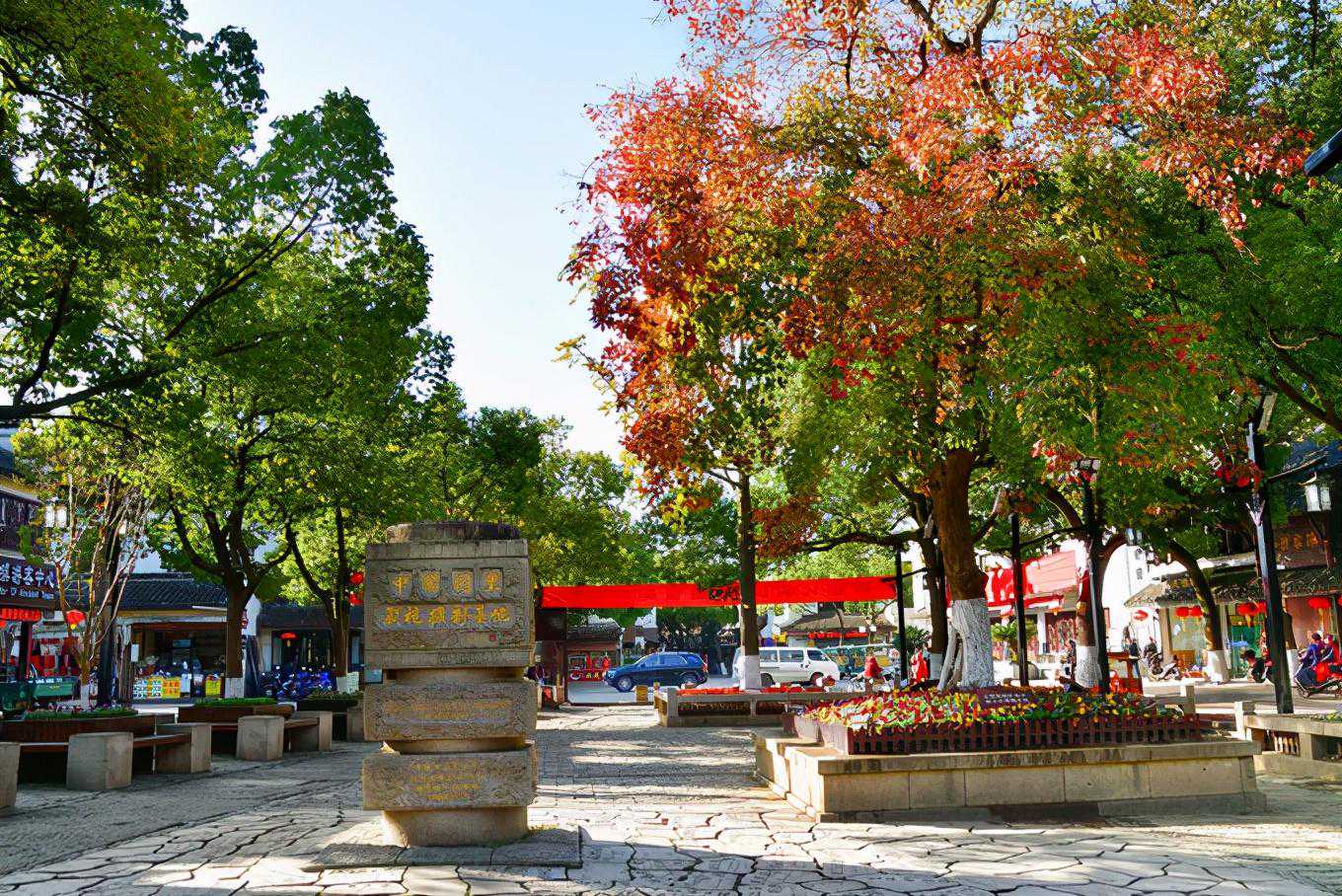 同里古镇门票100元整,里面含9个景点联票。学生、老人都有优惠,如果住在镇里的客栈,都可以代购85元的门票。每天的下午5点以后到第二天早上8点前,同里古镇是不用买票的。我们就是天平山赏枫叶结束后,公交4路换地铁1号线和4号线,到同里站9号口出站,换725路同里古牌楼站下,步行到古镇牌楼。