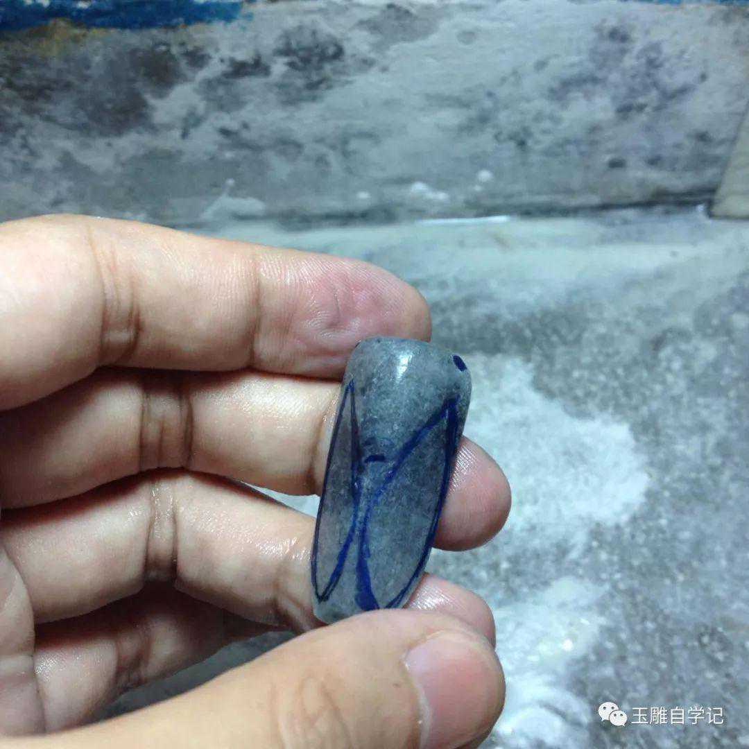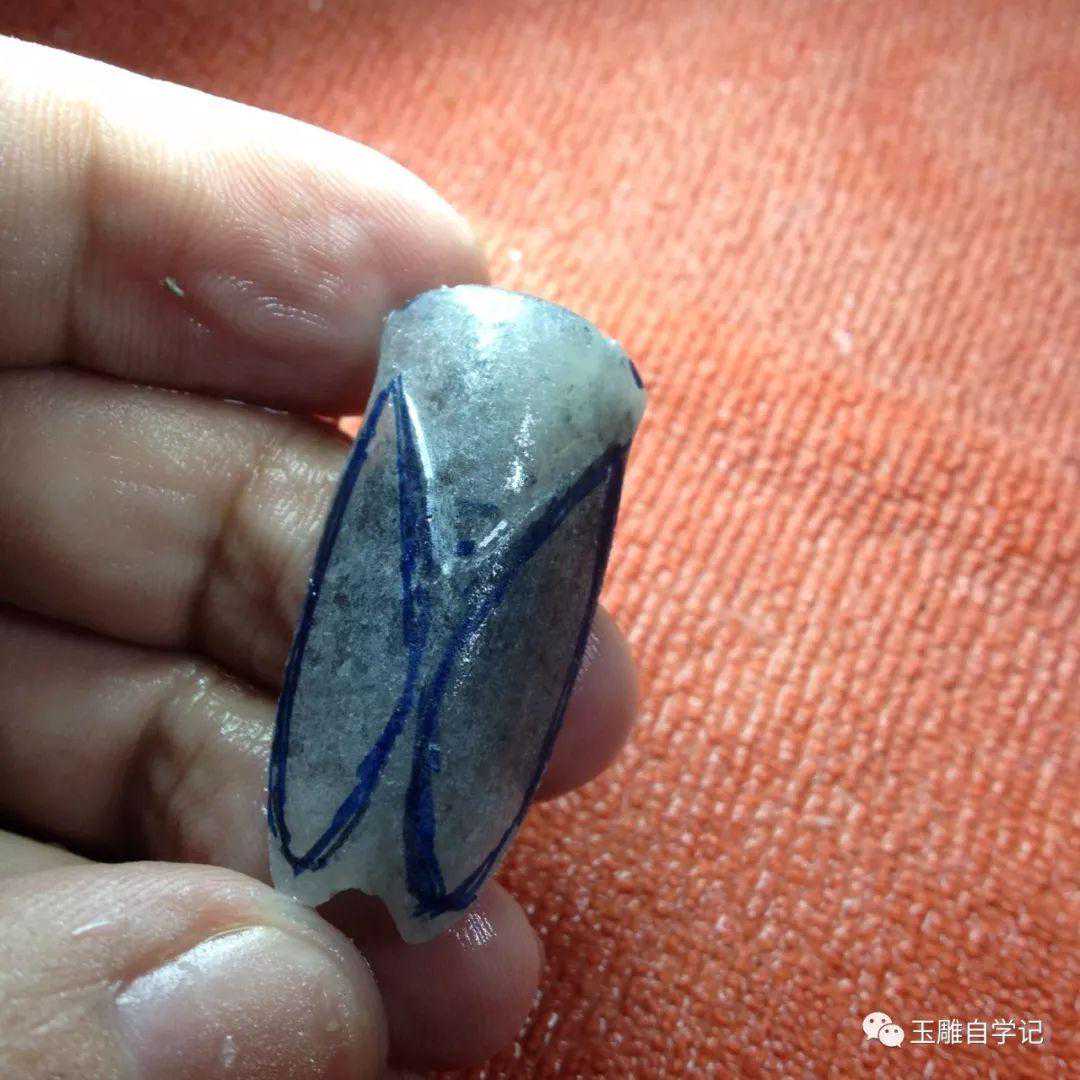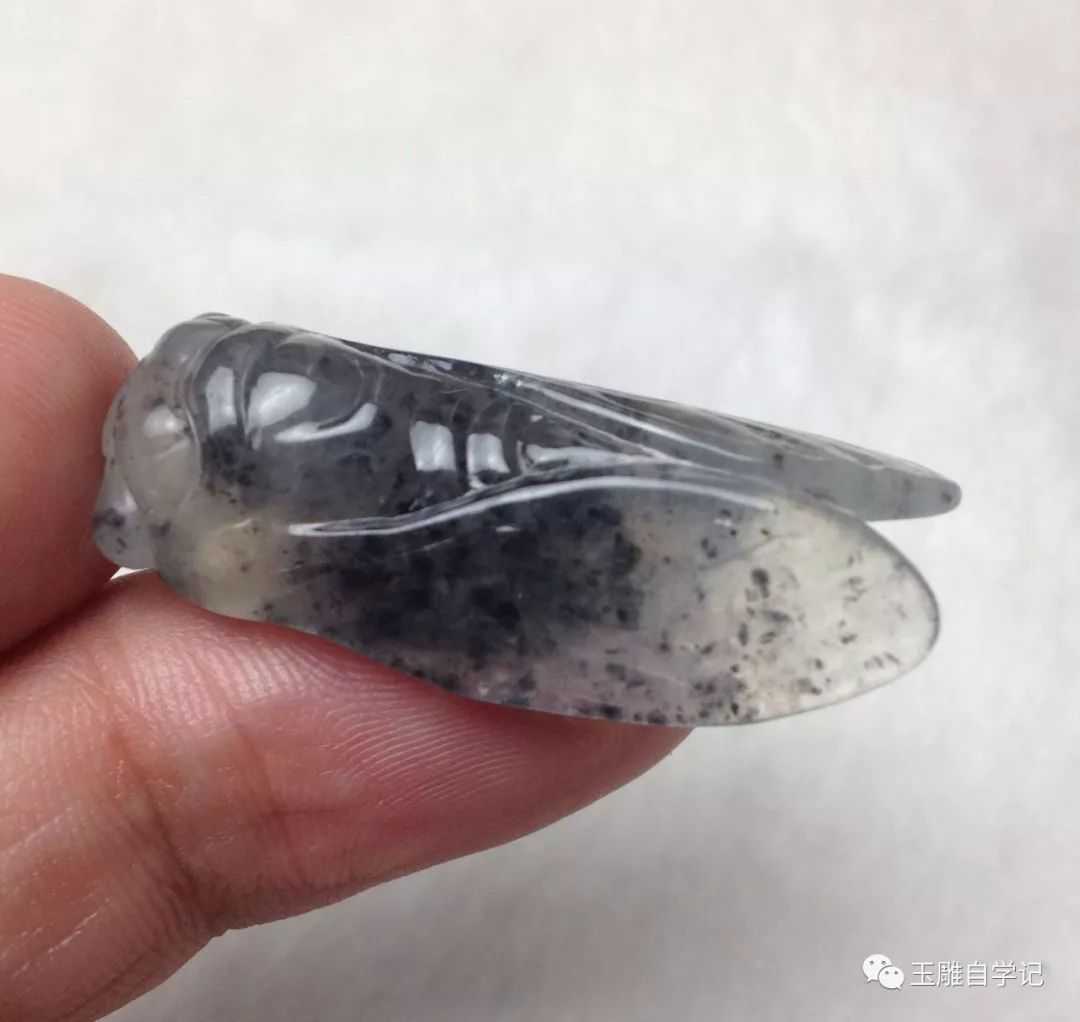 这个料子简直天生就是做蝉的材料,刚好是个长三角形状,跟蝉的身体形态很符合,一半颜色很黑做身体,另外一半颜色比较浅又很冰,做翅膀恰到好处。
