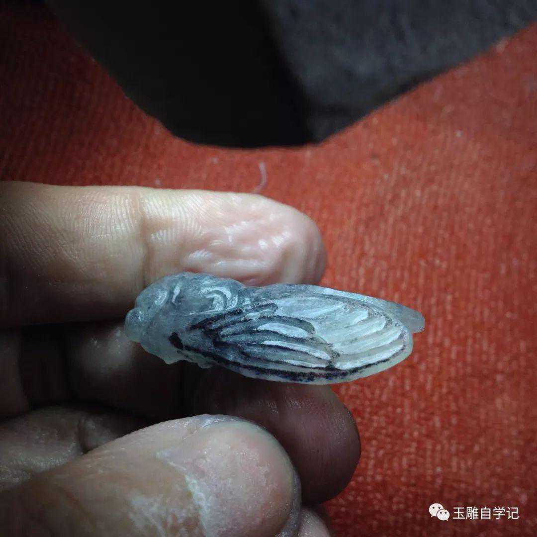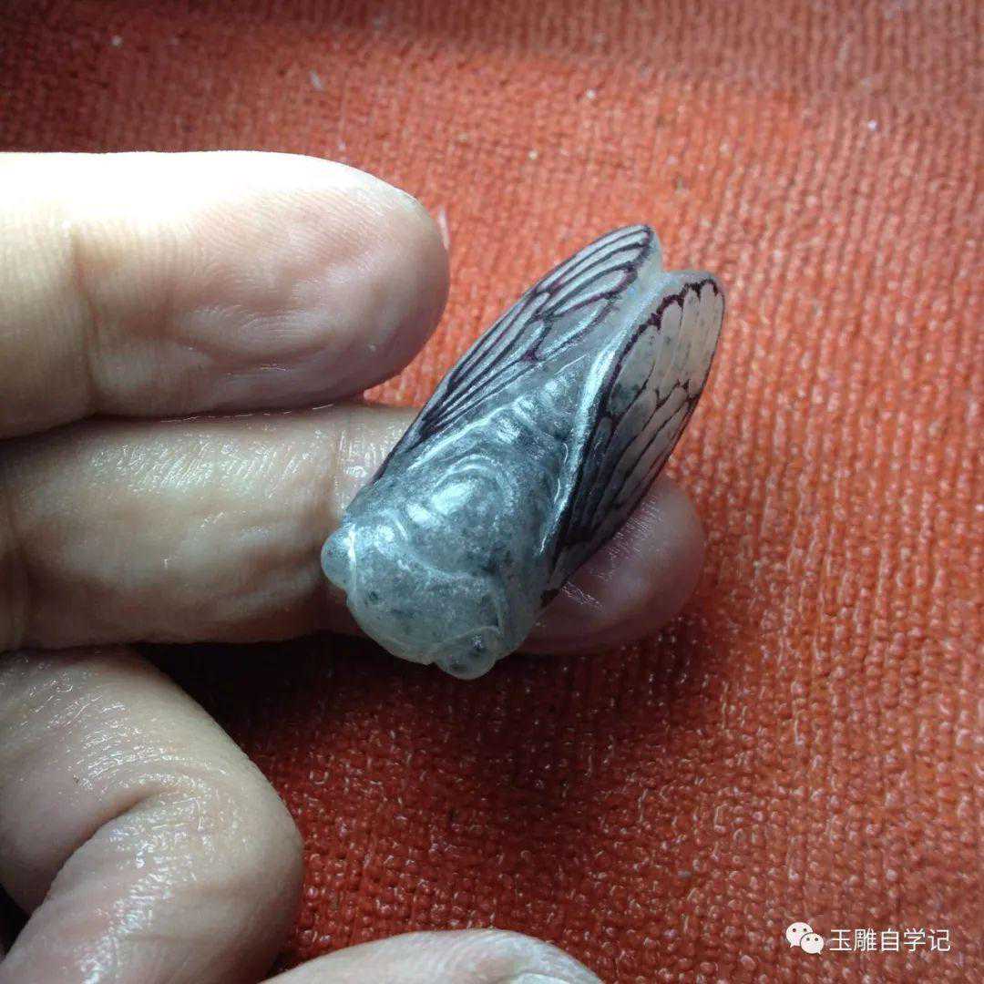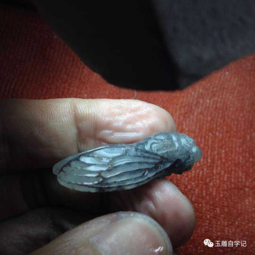 后记:能把一个料子发挥的恰到好处,那感觉真是太好了,可能一百个人心中有一百个想法,就我个人而言这个料子就是做蝉最合适了,没有浪费,颜色也刚刚好。只是现在看的话,还是雕工的问题比较多,不够精细啊,翅膀留的有些厚,当时想着怕断了,所以不敢做太薄,可以更薄一些的。然后翅膀的细节还有完善的空间,可以用小尖针在翅膀骨骼意外的位置点很多小点点,这样看起来更加生动,腿的部分也是刻画的不够清晰。以后注意!!!