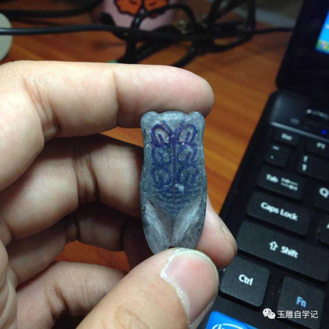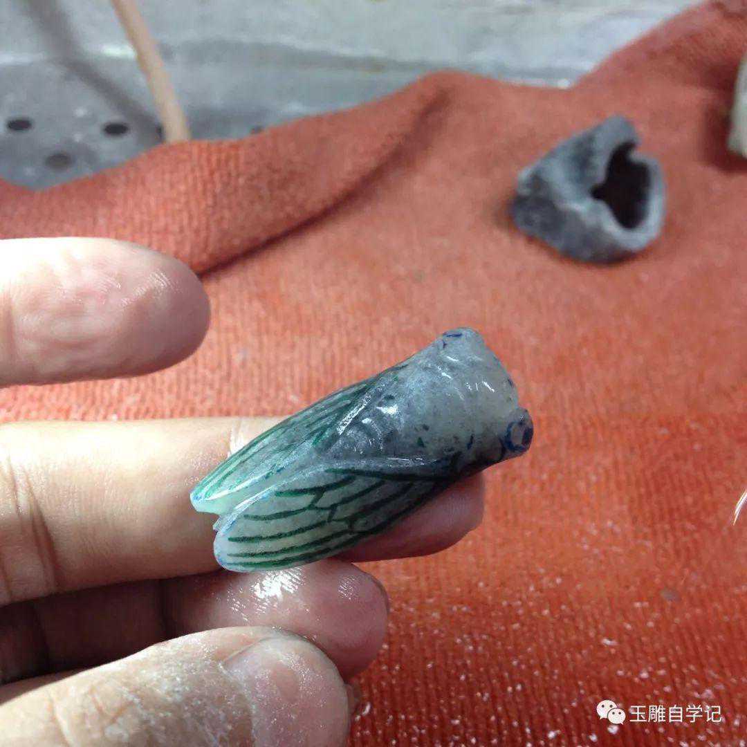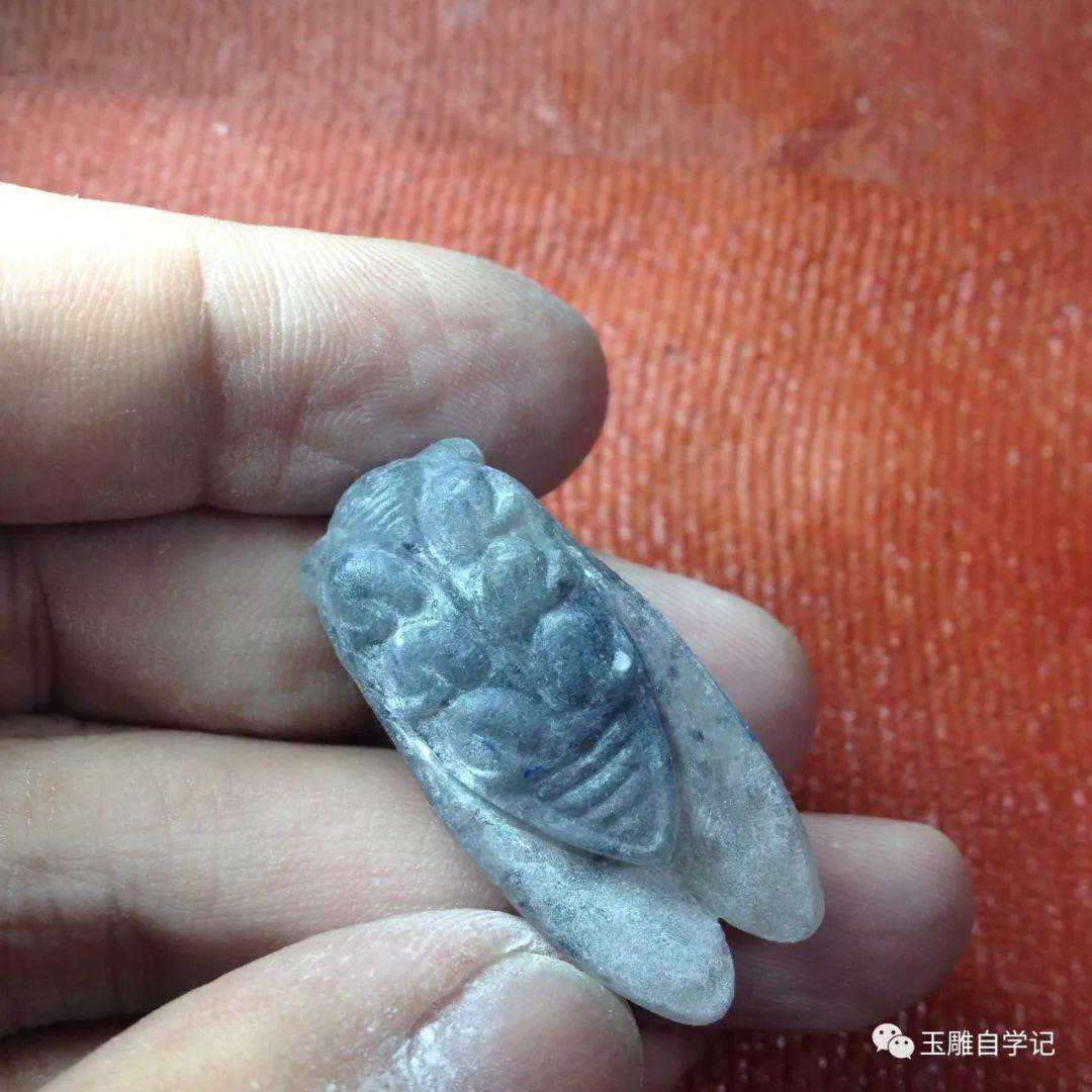 后记:能把一个料子发挥的恰到好处,那感觉真是太好了,可能一百个人心中有一百个想法,就我个人而言这个料子就是做蝉最合适了,没有浪费,颜色也刚刚好。只是现在看的话,还是雕工的问题比较多,不够精细啊,翅膀留的有些厚,当时想着怕断了,所以不敢做太薄,可以更薄一些的。然后翅膀的细节还有完善的空间,可以用小尖针在翅膀骨骼意外的位置点很多小点点,这样看起来更加生动,腿的部分也是刻画的不够清晰。以后注意!!!