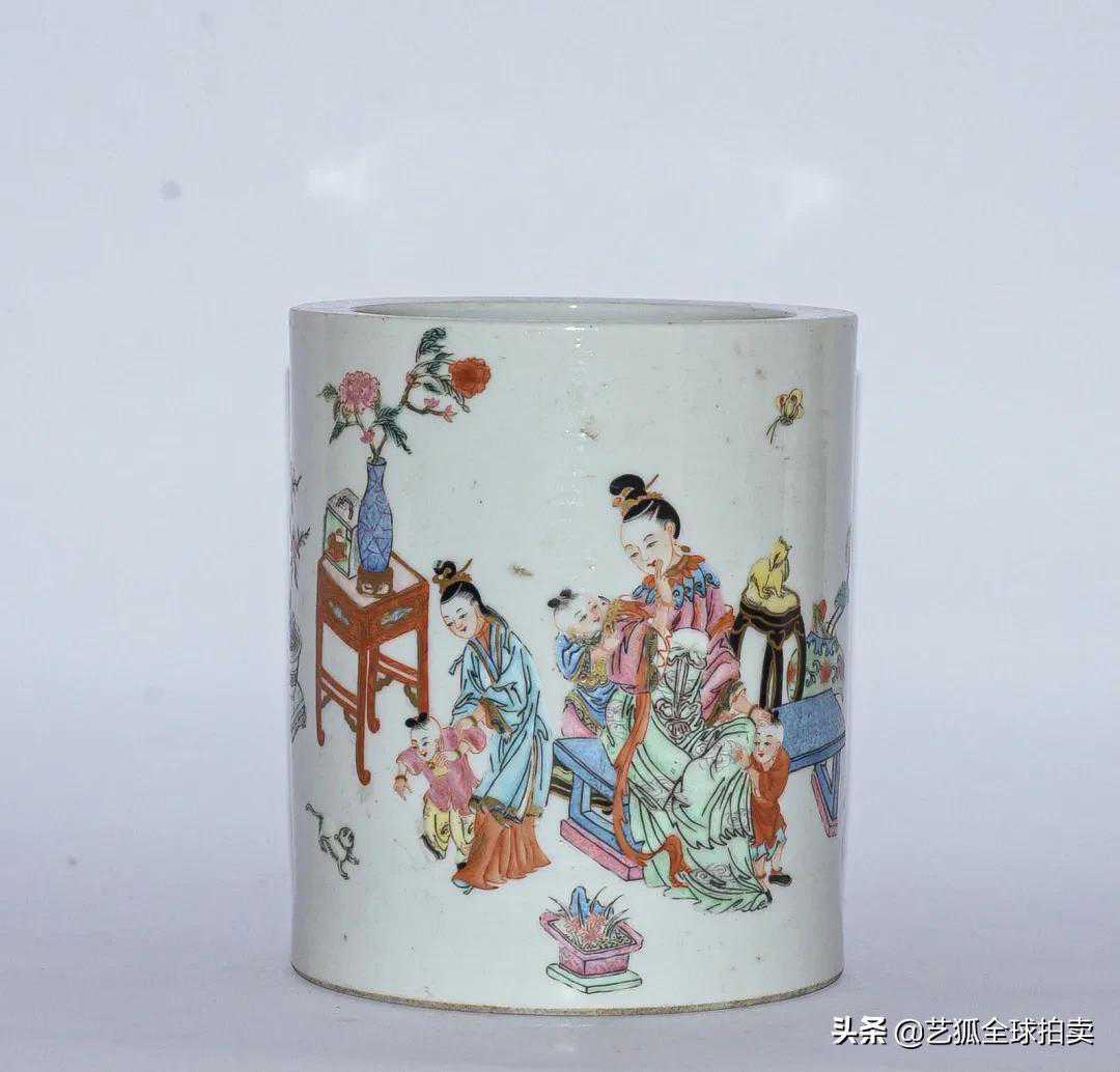 Lot58清·康熙青花釉里红鹤鹿纹笔筒