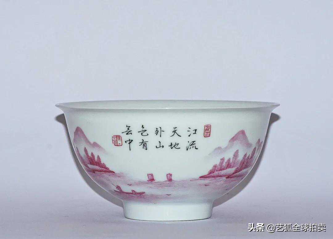 Lot59清·雍正款胭脂红山水题诗纹碗